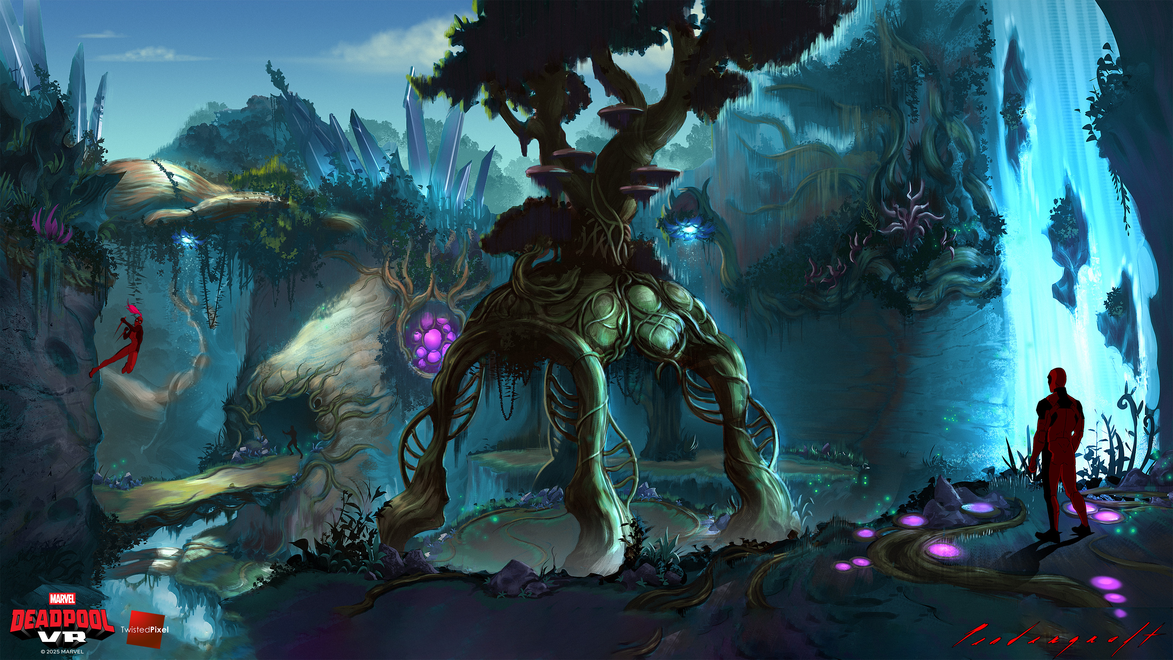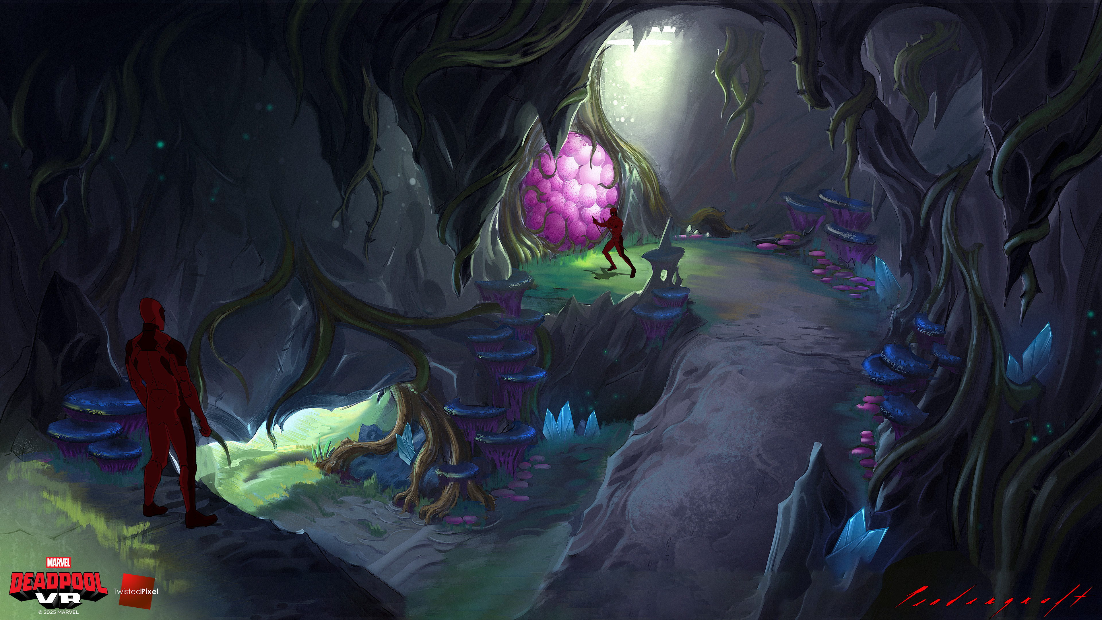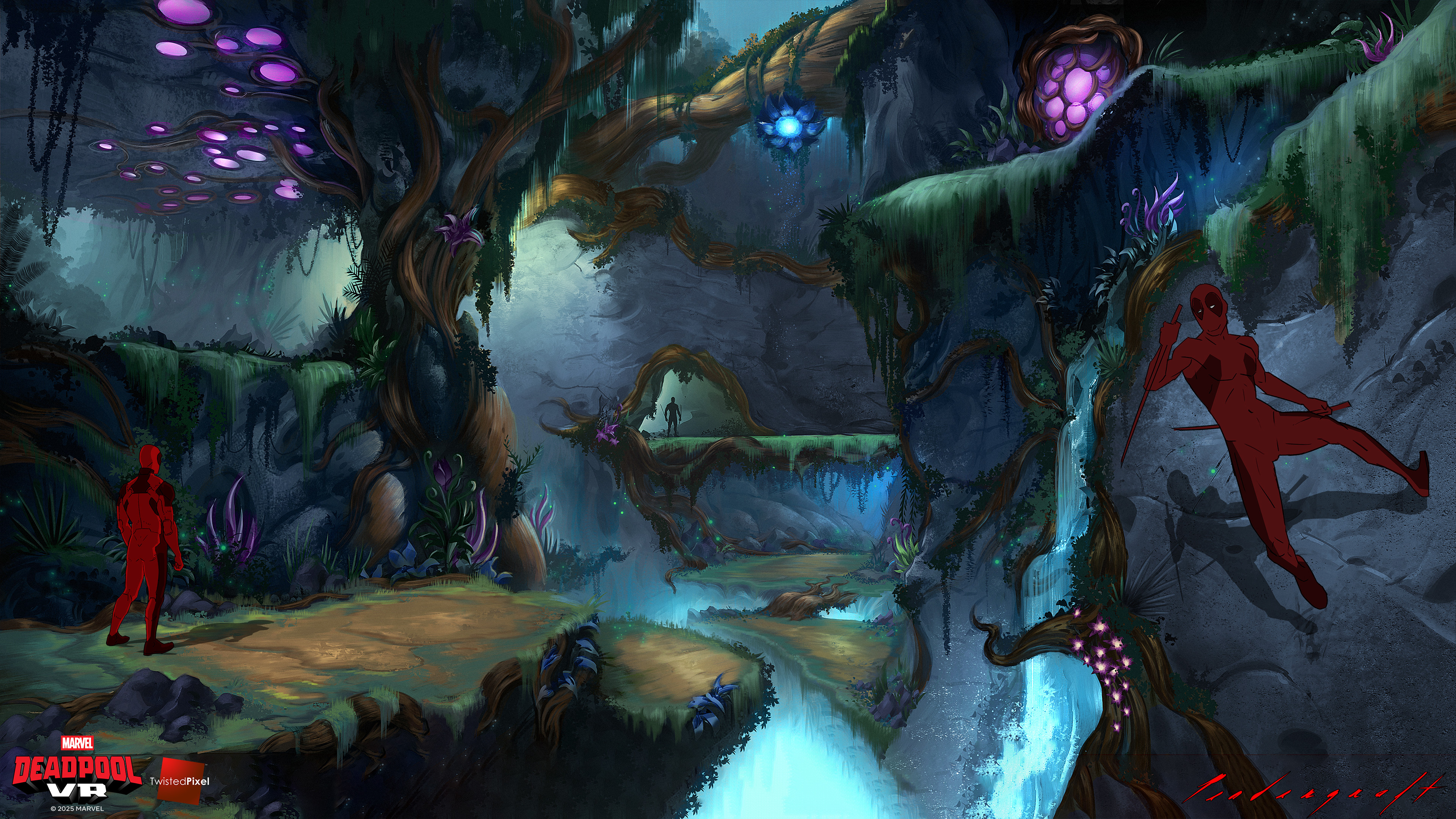 Krakoa is a small island in the Marvel universe that has an ecosystem which has mutated into a hive-mind entity. I spent a good deal of time defining the layout to make clear what was play space versus organic jungle. I did my best to maintain a very mysterious mood.