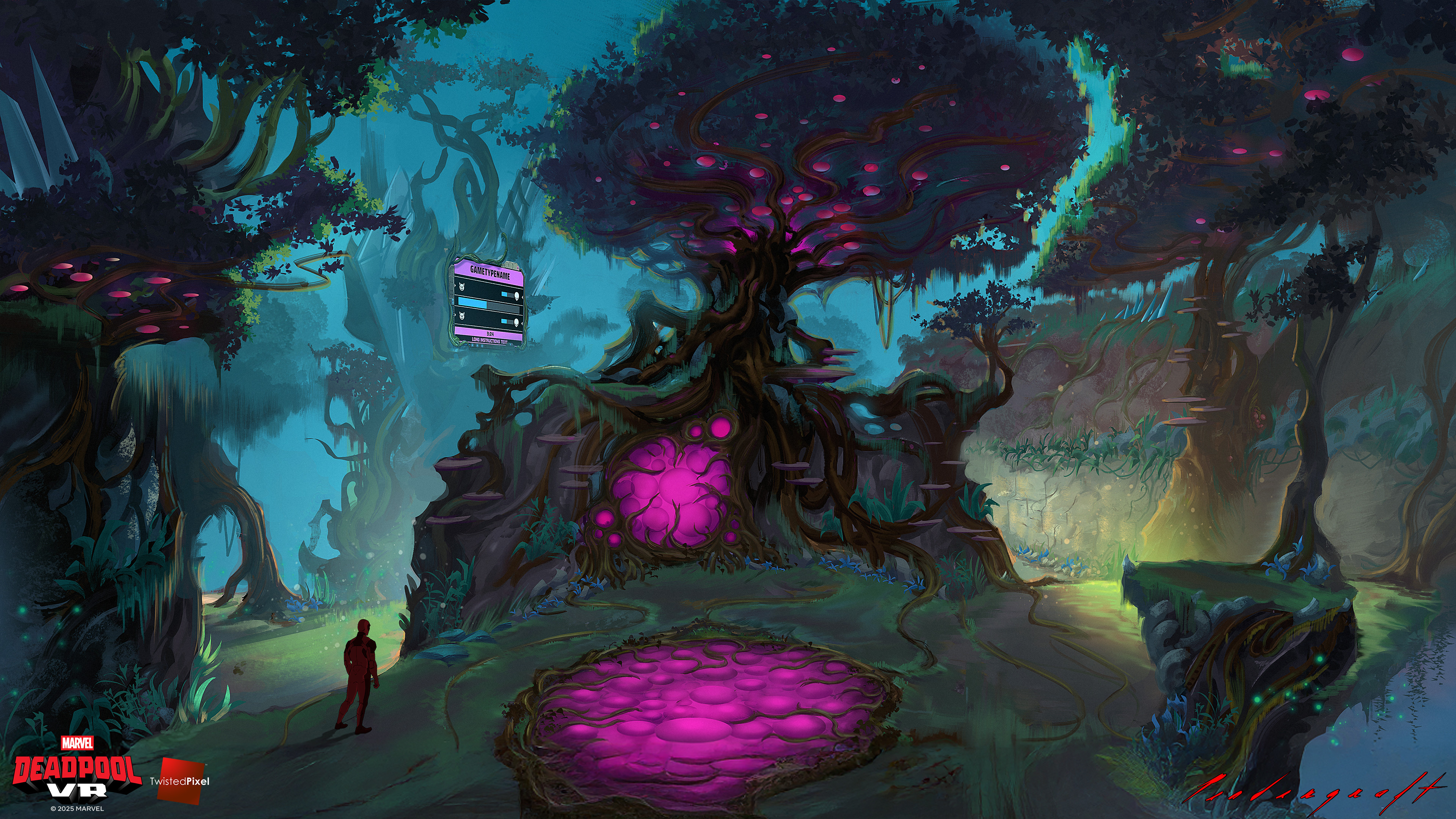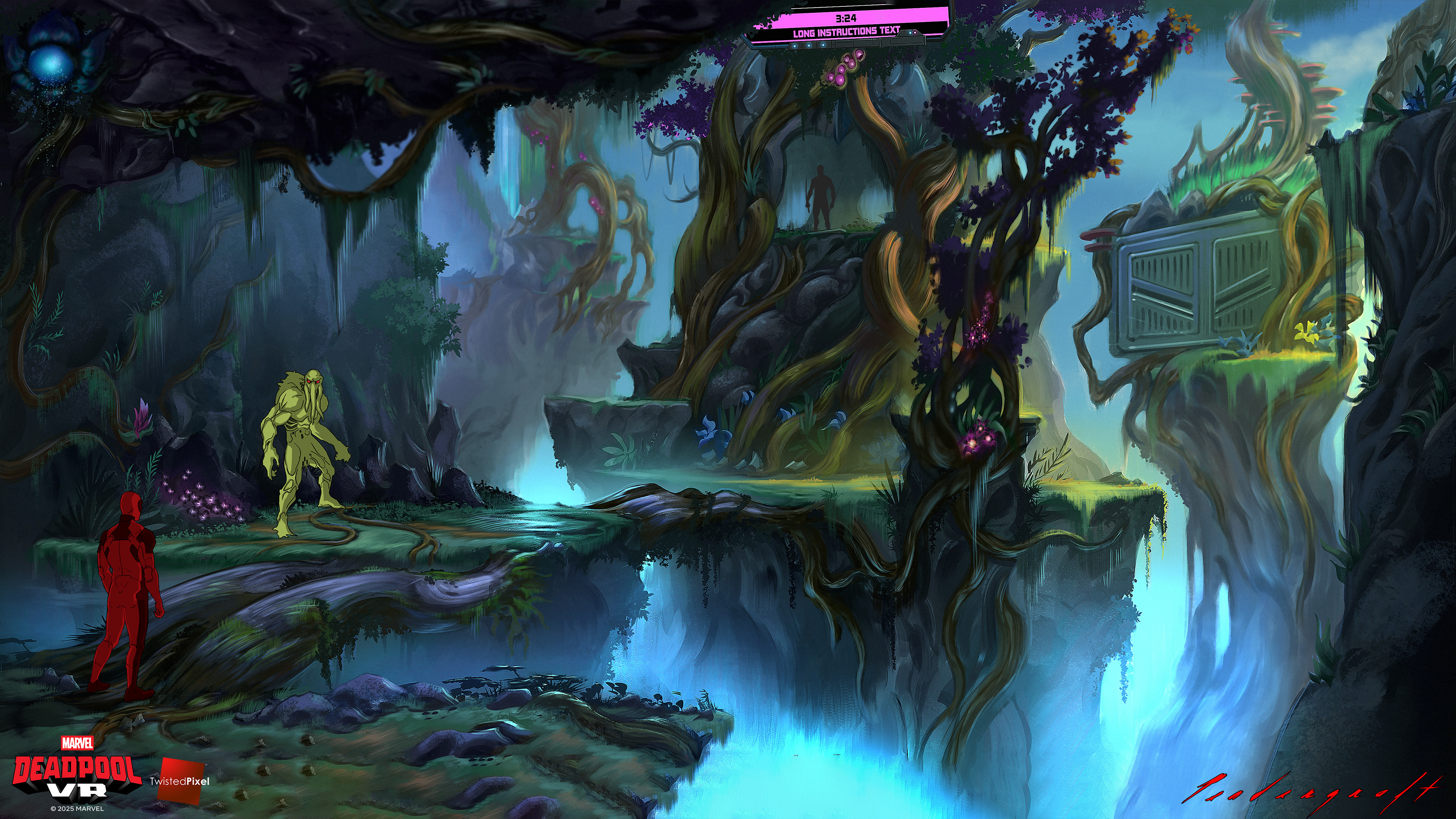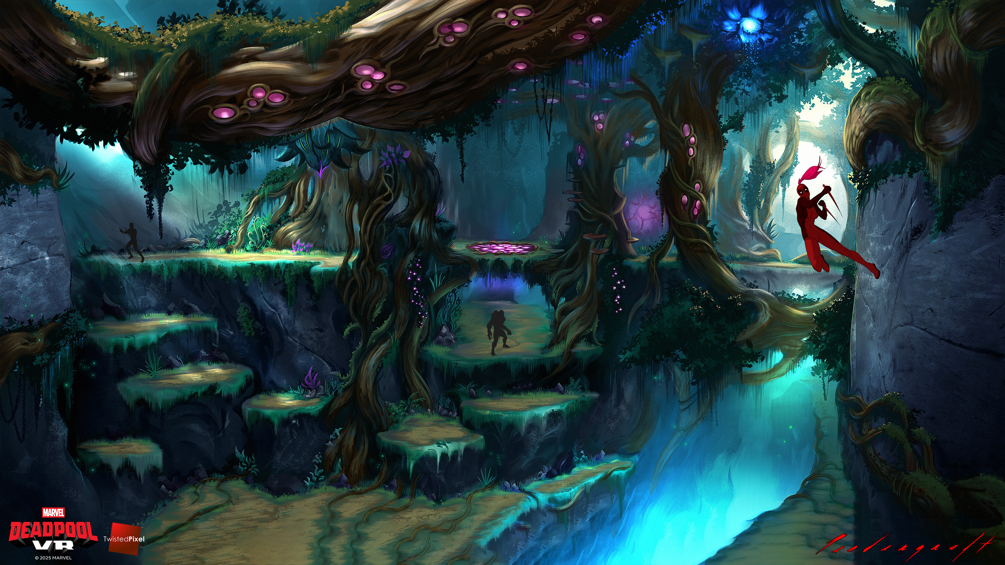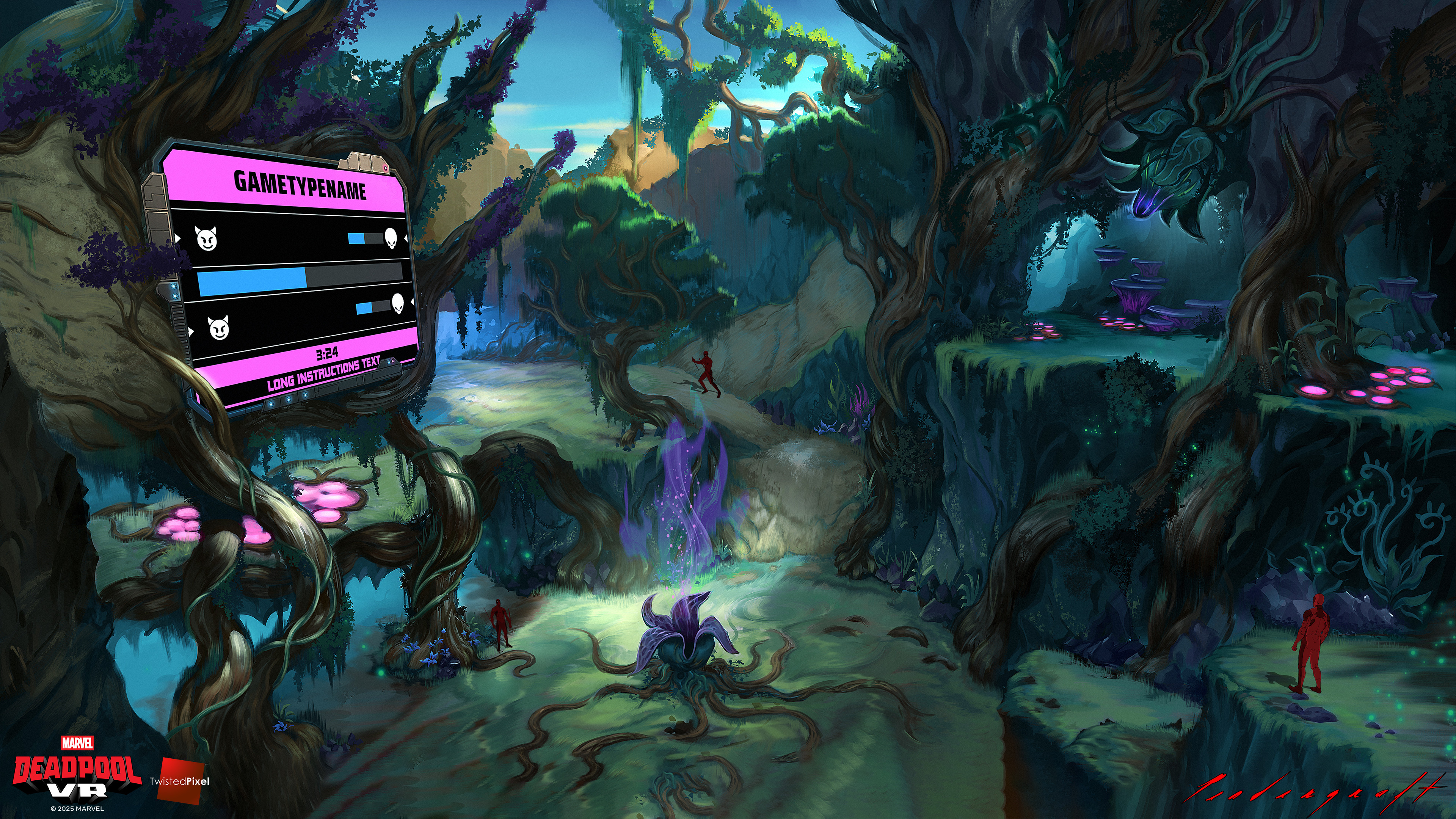Krakoa is a small island in the Marvel universe that has an ecosystem which has mutated into a hive-mind entity. I spent a good deal of time defining the layout to make clear what was play space versus organic jungle. I did my best to maintain a very mysterious mood.