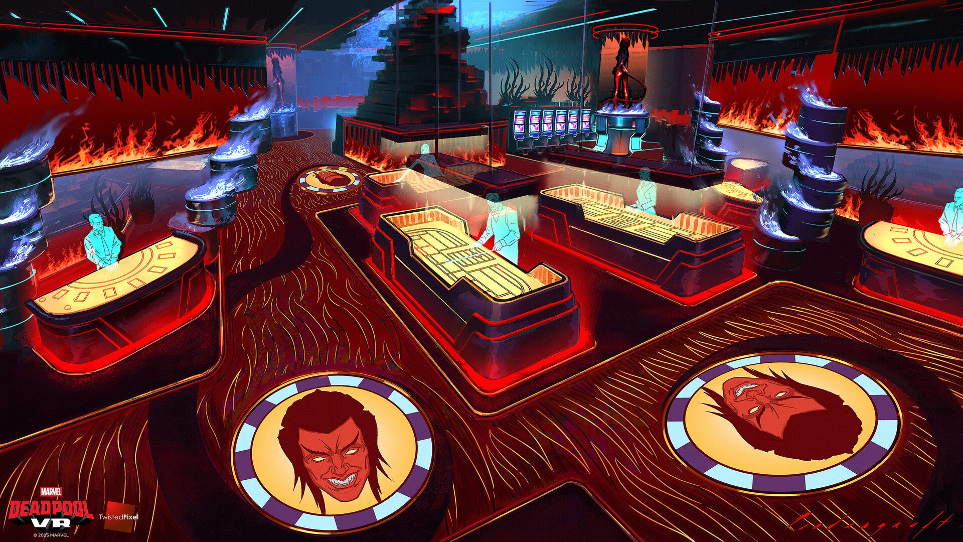 Hell Vegas, the home of the Hotel Inferno, is the base of operations for an extra-dimensional demon called Mephisto. Johnny Blaze, a.k.a. Ghost Rider, shows up in this level as Deadpool explores spaces ranging from opulent Las Vegas interiors to an insane thrill ride through the depths of a uniquely Marvel-defined hellscape.